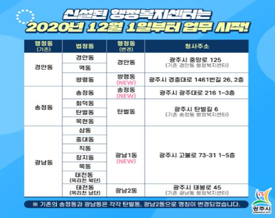 한편, 지난 7월 개정된 ‘광주시 행정운영동의 설치 및 동장정수에 관한 조례’가 임시청사 개청과 동시에 12월 1일 시행돼 광주시는 3면, 4읍, 6동 체제가 된다.
