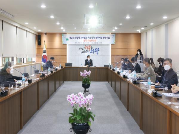 [KNT한국뉴스타임] 의왕시는 25일 시청 소회의실에서 김상돈 의왕시장, 박형구 시의원, 분야별 전문가 및 기후변화적응대책협의체 실무진 등 15명이 참석한 가운데‘제2차 기후변화적응대책 세부시행계획 수립용역 최종보고회’를 가졌다.