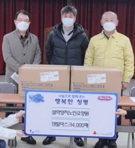 [KNT한국뉴스타임] 가평군은 설악양지노인요양원에서 청평면 행정복지센터를 방문하여 어려운 이웃에게 전달해 달라며 덴탈마스크 4,000매를 기탁했다고 밝혔다.