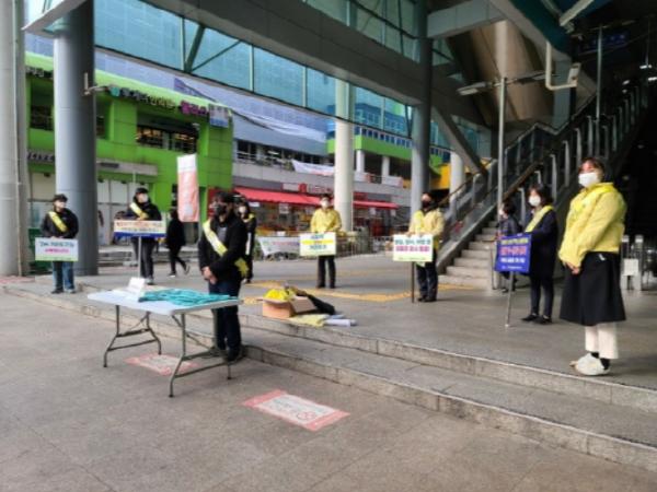 이날 캠페인은 코로나-19 감염 방지를 위해 시민과의 접촉 없이 모임, 행사, 여행 등 연기 및 취소하기, 2m이상 건강거리 유지하기, 손 씻기 등은 서로간의 배려 등의 홍보 피켓을 이용했고, 자율 배부대를 이용한 홍보물품 배부를 통하여 지역주민들의 큰 호응을 얻었다.