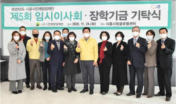 [KNT한국뉴스타임] 시흥시는 (재)시흥시인재양성재단이 지난 24일 시흥시청 글로벌센터에서 2020년 제5회 임시이사회와 장학기금 기탁식을 진행했다고 밝혔다.