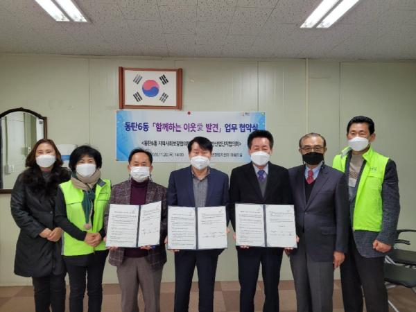 [KNT한국뉴스타임] 화성시 동탄 6동 지역사회보장협의체가 26일 동탄 6동 행정복지센터에서 (사)동탄일반산업단지협의회와 ‘함께하는 이웃愛발견’업무협약을 맺었다.