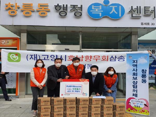 [KNT한국뉴스타임] 고양시 덕양구 창릉동(동장 양현종)은 25일 고양시 호남향우회 삼송지회(현 회장 공무정, 차기 회장 김병상)로부터 김장김치 20통을 후원 받았다고 밝혔다.