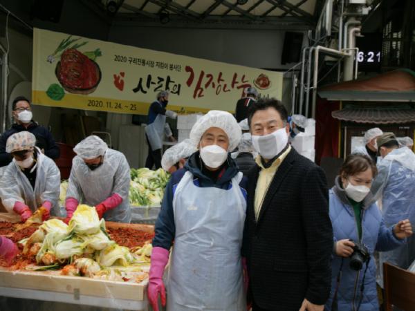 [KNT한국뉴스타임] 구리시는 24일부터 25일까지 이틀간 구리전통시장 무대 앞에서 구리전통시장 상인회(회장 조종덕) 주관으로 따뜻한 온기가 가득한 김장 김치를 직접 담가 어려운 이웃에게 전달하는 ‘2020년 구리전통시장 김장 나눔 봉사’를 실시했다고 밝혔다.