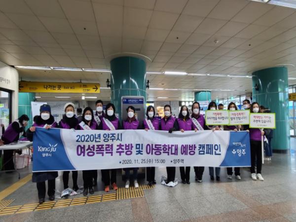 캠페인 참여자들은 양주역을 이용하는 시민들을 대상으로 폭력 문제에 대한 시민들의 적극적인 관심과 책임 의식을 고취시키고자 아동 여성 등 사회적 약자에 대한 폭력 근절을 알리는 피켓을 들고 홍보물품과 리플렛을 배부했다,