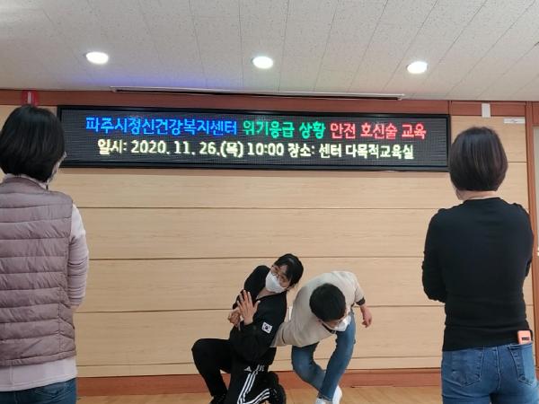 [KNT한국뉴스타임] 파주시정신건강복지센터는 지난 26일 센터 종사자 대상으로 위기응급상황 안전 호신술 교육을 진행했다.