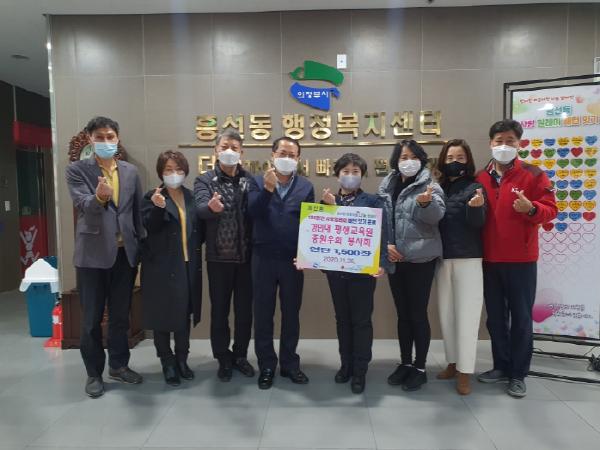 [KNT한국뉴스타임] 의정부시 흥선동 행정복지센터는 11월 26일 경민대학교 평생교육원 최고경영대학원 봉사회(회장 김정자)가 저소득가정에 연탄 1천500장(120만 원 상당)을 기탁했다고 밝혔다.