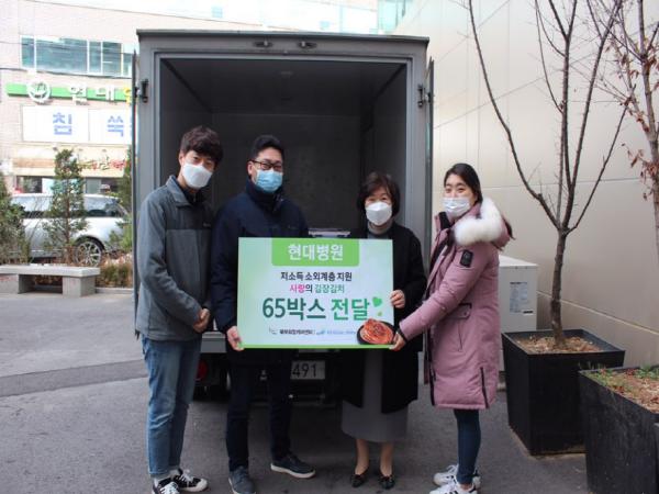 김부섭 현대병원장은 “김장철을 맞이해 지역의 이웃들을 위해 나눔에 참여할 수 있어 정말 기쁘다. 코로나19로 모두가 힘든 시간을 보내고 있지만 전달된 김치를 통해 조금이나마 가정에 도움이 되고 따뜻한 마음을 느낄 수 있었으면 좋겠다. 앞으로도 꾸준히 나눔에 동참할 수 있도록 최선을 다하겠다.”고 전했다.