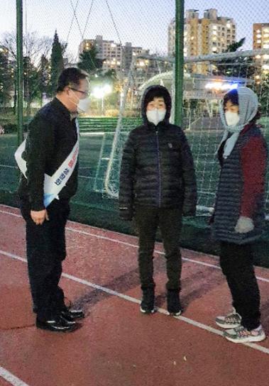 [KNT한국뉴스타임] 의왕도시공사는 코로나19 지역사회 감염확산 방지를 위해 내손체육공원 내 마스크 착용 등 방역수칙 준수 야간 집중계도를 실시하고 있다.