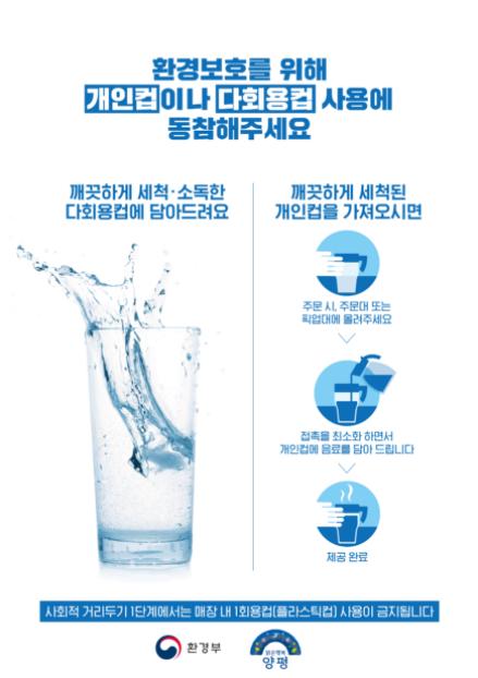 군 관계자는 “1회용품 사용을 줄일 수 있도록 철저한 위생관리 하에 개인컵 및 다회용컵 사용이 활성화되기 바란다”며 “폐기물 발생량 감축을 위해 주민분들의 적극적인 동참을 부탁드린다”고 전했다.
