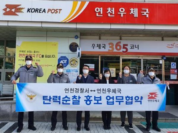 [KNT한국뉴스타임] 연천경찰서는 연천관내 8개 우체국과 업무협약을 통하여 우체국에서 취급하는 택배박스, 우편물, 등기우편 등 모든 우편물에 자체 제작한 스티커를 부착하여 대국민 상대 탄력순찰을 홍보한다고 밝혔다.
