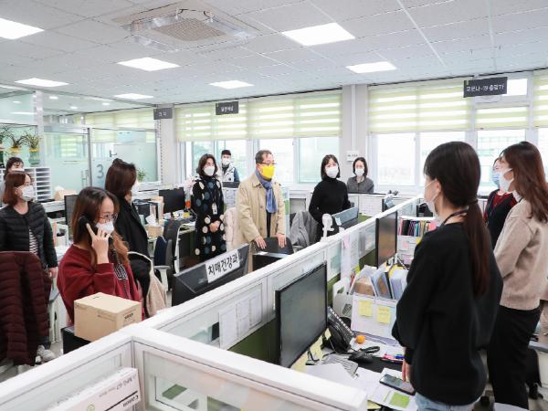 조 시장은 보건소 직원들의 현장 애로사항을 청취하고, 코로나19 방역 및 대응책을 점검했다.