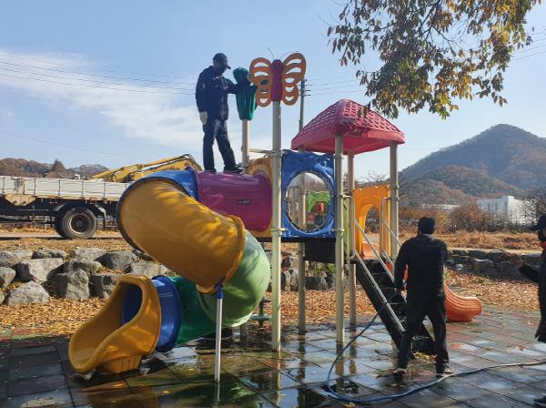 이에 동은 희망일자리 근로자 4명을 별도 배치해 마을회관 주변 공용 분리수거장의 주변 쓰레기를 정비하고, 어린이놀이터 시설물에 쌓인 흙먼지를 깨끗하게 씻어냈다.