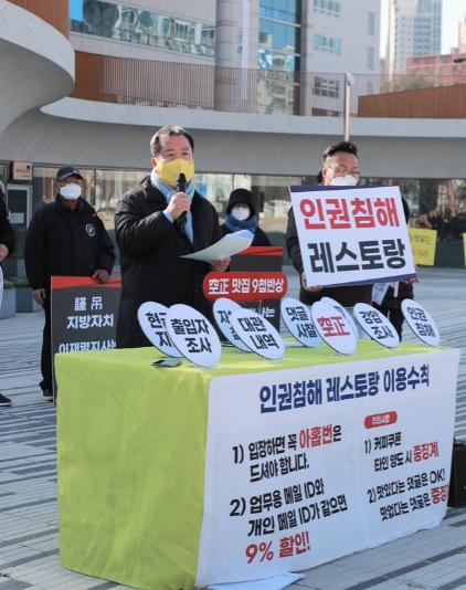 시는 기자회견장에 ‘부패와 뷔페 착각하신 듯?’이라는 문구가 적힌 현수막을 걸고‘인권침해 레스토랑’을 차려 경기도 감사에 대해 풍자했으며, 테이블 위에는 ▲공정 ▲현금지급 ▲자치권침해 ▲출입자조사 ▲대관내역 ▲댓글사찰 ▲커피쿠폰 ▲강압조사 ▲인권침해 등 9가지 메뉴를 올려 ‘업무용 메일ID와 개인 메일ID가 같으면 9% 할인’이라는 이용수칙과 ‘맛있다는 댓글은 OK! 맛없다는 댓글은 중징계’라는 주의사항 등을 안내하며 경기도 감사의 위법성을 우회적으로 비판했다.