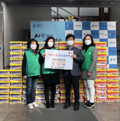 상현1동에서는 1일 새마을부녀회가 어려운 이웃을 위해 써달라며 100만원 상당의 라면을 기탁했다. 이날 기탁받은 라면은 바자회 등 행사에서 얻은 수익금으로 마련한 것이다. 기탁받은 라면은 저소득가구 100곳에 전할 예정이다.