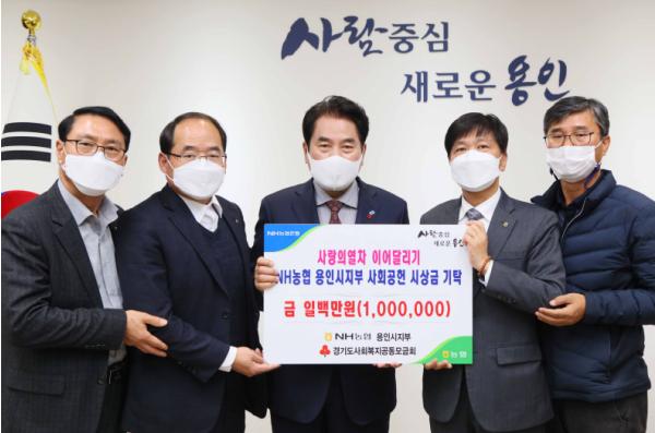 백군기 용인시장은 “다양한 사회공헌 활동을 하고있는 농협중앙회 용인시지부가 올해 좋은 상을 받아 진심으로 축하의 마음을 전한다”며 “기탁받은 성금은 꼭 필요한 이웃을 위해 소중히 쓸 것”이라고 말했다.