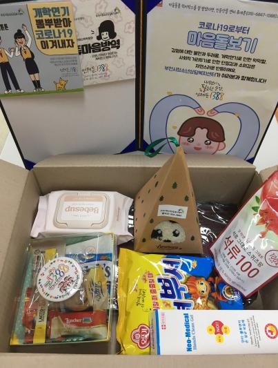 마음방역꾸러미는 ‘청소년동반자’가 직접 청소년을 방문해 위기 상황을 확인하고, 청소년의 정서적 지지에 도움이 되는 상담사의 손 편지나 마음방역을 위한 매뉴얼, 손세정 물티슈나 마스크와 같은 방역물품, ‘집콕’을 위한 간단한 놀이거리 등을 제공하는 사업이다.