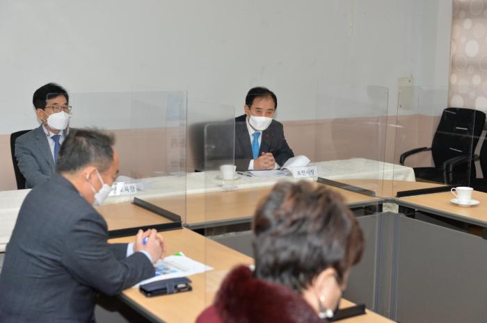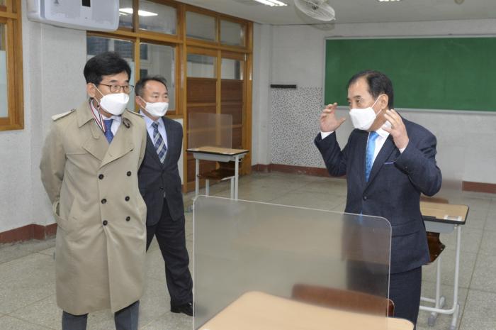 이번 방문은 박윤국 포천시장을 비롯하여 경기도포천교육지원청 심춘보 교육장 등이 함께하였으며, 수능시험을 앞두고 최근 코로나19 3차 유행이 본격화됨에 따라, 시험 전 방역준비 현황을 전반적으로 점검하고 관내 학생들을 위한 안정적인 수험환경 조성 준비로 바쁜 일선 학교의 노고에 감사의 뜻을 전달하고자 진행되었다.
