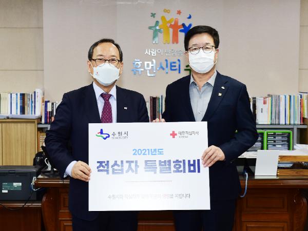 [KNT한국뉴스타임] 수원시가 대한적십자사 경기도지사에 ‘2021년 적십자 특별회비’ 500만 원을 전달했다.