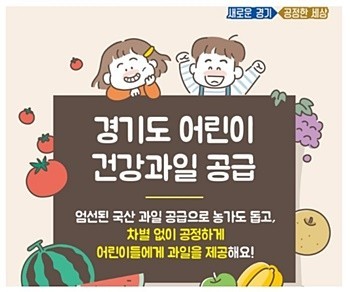 건강과일은 현물 제공방식이 아닌 관내 편의점에서 국내산 과일만을 구입할 수 있는 모바일카드(경기지역화폐 앱)이며 어린이 1인당 4만500원이 지원될 예정이다.
