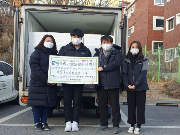 서울고속도로 주식회사 강태구 대표는 “동절기를 맞아 독거어르신들에게 가장 필요한 김장김치를 전달해드릴 수 있어서 기쁘고, 이번 김장김치를 통해 어르신들의 밥상에 맛있는 김치가 올라가 맛있게 드시면서 오래오래 사시길 바란다.”라고 밝혔다.