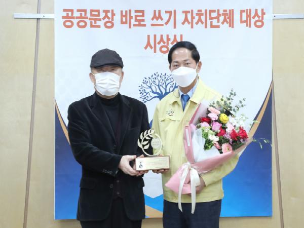 (사)우리글진흥원(원장 손수호)에서 선정하는 ‘공공문장 바로쓰기 자치단체 대상’은 일선 행정에서 바르고 쉬운 공공문장을 사용한 자치단체에 수여하는 상으로 지난 2013년 시작됐다.