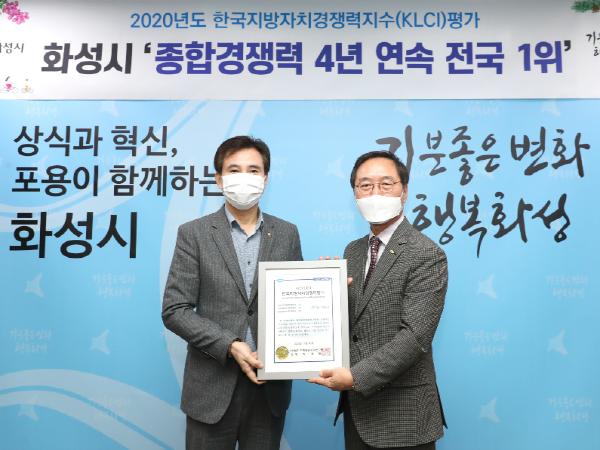 [KNT한국뉴스타임] 화성시가 한국공공자치연구원에서 주관한 2020년 한국지방자치경쟁력지수(KLCI) 평가에서 전국 226개 기초자치단체 중 4년 연속으로 1위를 달성하였다.