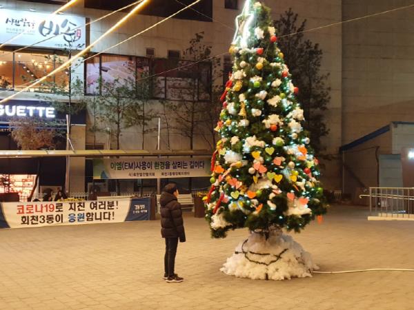 김현수 회천3동 주민자치위원장은 “한 해를 돌아보고 코로나19로 지친 주민들에게 위로와 희망의 메시지를 전달하고자 성탄 트리를 준비했다”며 “반짝이는 트리를 바라보며 연말연시 분위기를 느끼고 소중한 사람과 함께 새해 소망을 기원하는 시간이 되길 바란다”고 말했다.