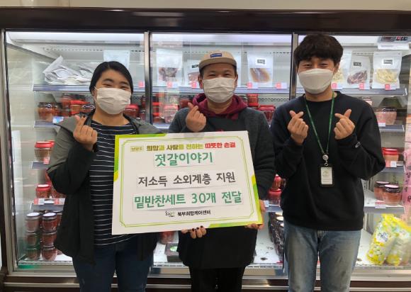 젓갈이야기 김경호 대표는 “항상 나눔에 참여하고 싶은 마음을 가지고 있었는데 이렇게 북부희망케어센터를 통해 동참할 수 있어 매우 기쁘다. 주변 이웃들에게 전달되는 반찬인 만큼 더욱 정성을 다해 준비하고 잘 전달 될 수 있도록 최선을 다하겠다.”고 밝혔다.