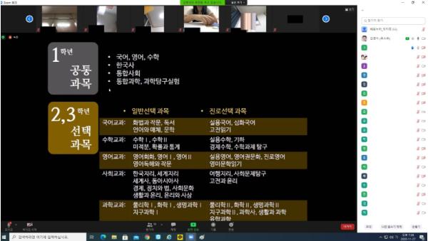 이와 더불어 이번 입시특강에는 학부모 대상의 교육도 포함됐다. 자녀들이 어떤 방향으로 목표를 수립해야 하는지, 어떻게 학습지도를 해야 하는지 등에 대한 강의도 진행되어, 자녀와 학부모가 함께 앞으로의 고등학교 학업 준비 및 대학입시 관련 의견을 온라인으로 나누며 소통하는 의미 있는 시간이었다.