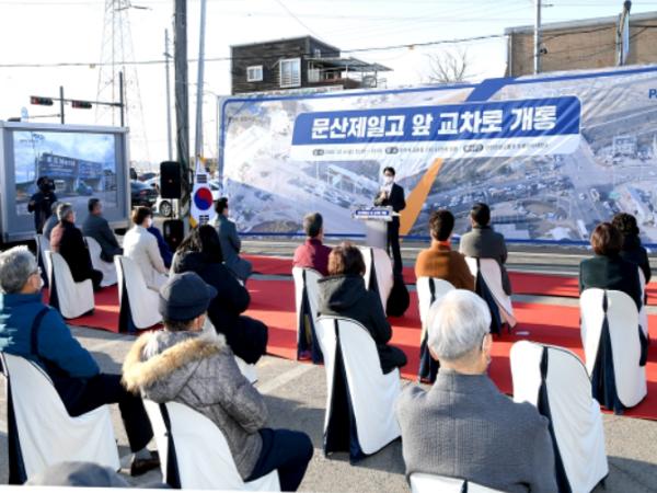 [KNT한국뉴스타임] 파주시는 문산제일고 앞 방호벽 철거와 교통개선 사업을 마무리하고 4일, 개통식을 진행했다.