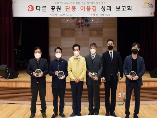 이날 행사는 성과보고회 이후 직동근린공원 초화원으로 이동하여 시민대표, 조경업체 대표 등과 함께 함께 단풍 어울길 준공 기념식수 및 단풍 어울길 표지석 제막식으로 마무리했다.