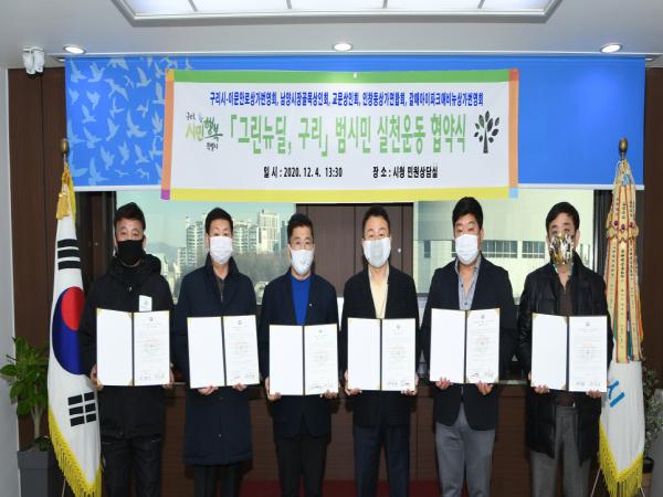 [KNT한국뉴스타임] 안승남 구리시장은 지난 4일 구리시 5개 골목상권 상인회와 그린뉴딜 범시민 실천운동 추진을 위한 협약을 체결했다고 밝혔다.