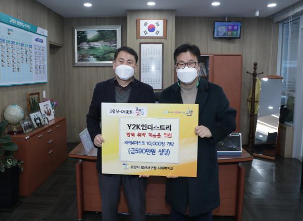 [KNT한국뉴스타임] 고양시 일산서구청은 지난 7일 파주시에 소재한 마스크 제작업체인 Y2K인더스트리(대표 김형근)가 코로나19로 어려움을 겪고 있는 이웃에게 전달해달라며 방역마스크 1만장을 기탁했다고 밝혔다.