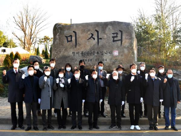 지난 4일 미사리 마을입구에서 열린 제막식에는 김상호 하남시장을 비롯한 최종윤 국회의원, 방미숙 하남시의회 의장 등 30명이 참석했다.