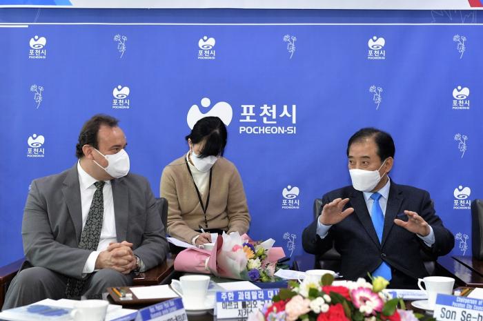 [한국뉴스타임=포천] 8일 주한 과테말라 마르코 툴리오 치카스 소사 대사 일행이 양국 지방자치단체 간 우호교류 협력방안을 논의하기 위해 포천시를 방문했다.