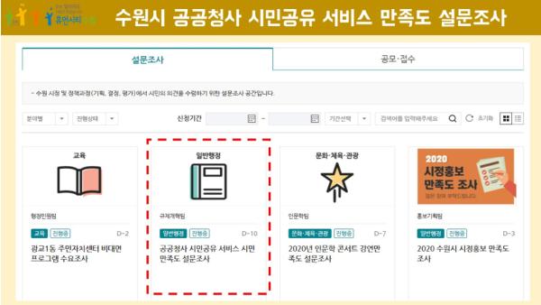 수원시에 거주자, 수원시 소재한 학교·직장을 다니는 사람은 누구나 설문조사에 참여할 수 있다.