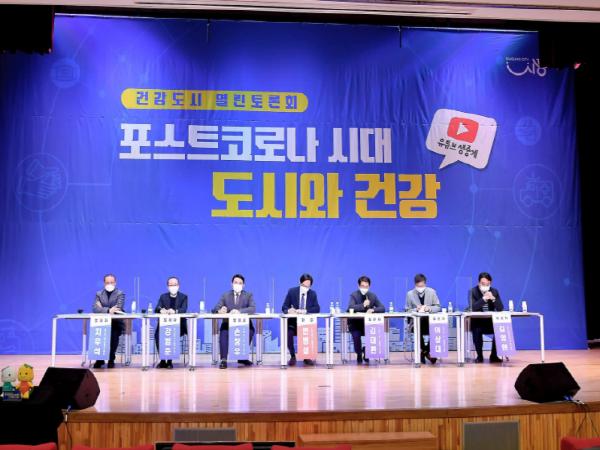 [KNT한국뉴스타임] 시흥시는 포스트 코로나시대에 감염병과 도시환경과의 상관관계를 짚어보고 도시와 시민의 건강성 향상을 위한 도시계획 등 건강도시 사업 추진방안을 모색하고자 8일 오후 늠내홀에서 포스트코로나 시대 도시와 건강 열린 토론회를 개최했다.
