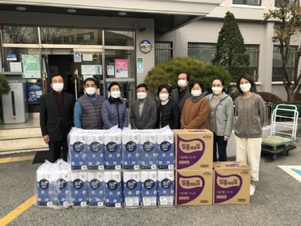 기증자는 관내 소재 기업 태화유통의 김봉수 대표와 주민 ㈜한가람인더스 이희철 대표로 화장지 72세트, 곽티슈 168세트 및 KF94 마스크 2,160장을 연말 불우이웃을 위한 후원물품으로 전달했다.