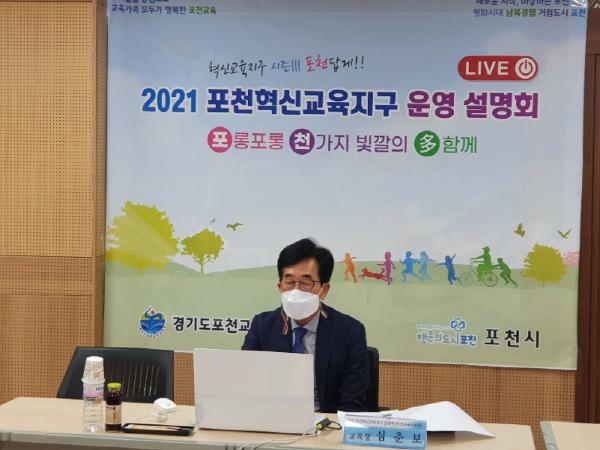 심춘보 교육장은“코로나19 상황 속에서도 한해 동안 학교교육과정 운영으로 아이들의 행복한 성장과 배움을 위해 노력해주셔서 감사하다는 말씀과 함께 2021년은 혁신교육지구 시즌Ⅲ(2021~2025)의 시작하는 해로 학교와 마을이 넘나들며 배우는 지역교육력 제고를 위해 현장중심의 다양한 교육 지원으로‘지역교육생태계 확장을 통한 포천 미래교육 실현’을 위해 우리 포천의 특색에 맞게 학교는 학생들의 꿈과 희망을 키우는 곳로, 마을과 함께 행복한 배움터가 되도록 만들어가겠다.”라고 밝혔다.