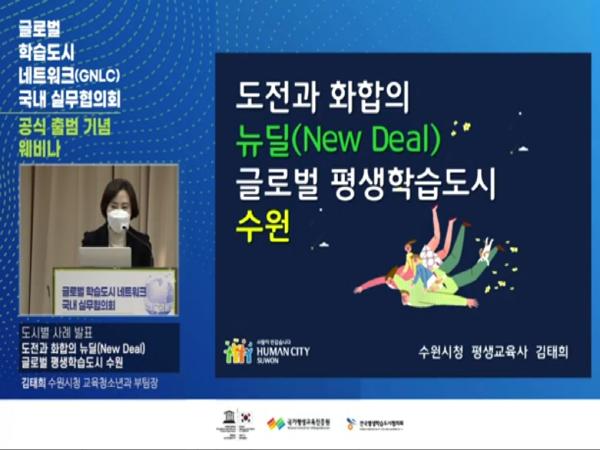 9일 오후 2시 유튜브를 통해 생중계된 유네스코 글로벌 학습도시 네트워크(GNLC) 국내 실무협의회 공식 출범 웹 세미나에서 수원시가 사례발표를 했다.
