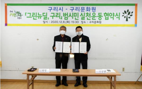 [KNT한국뉴스타임] 구리시는 8일 ㈔구리문화원과 기후위기 대응「그린뉴딜, 구리」협약식을 가졌다고 밝혔다.