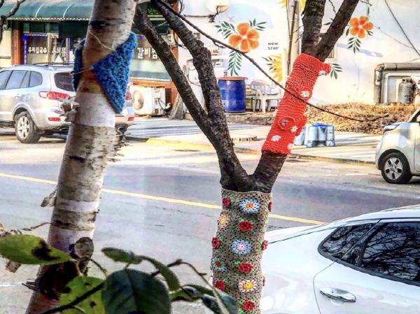 제4검문소 추진위원회는, 겨울철 병충해 예방을 위해 가로수에 두르던 볏짚을 대신해 자원봉사자들과 함께 형형색색의 뜨개옷을 직접 만들고 나무에 둘러 성탄절 분위기도 한껏 느낄 수 있도록 했다.