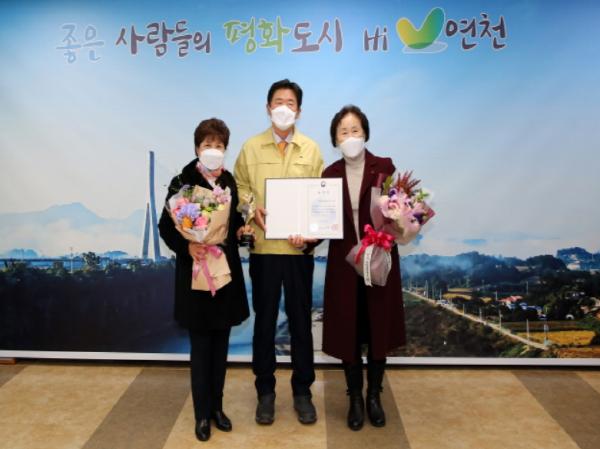 [KNT한국뉴스타임] 연천군은 지난 9일 백학면새마을부녀회에 2020년 제9회 대한민국 나눔국민대상 보건복지부장관 표창장과 상패를 전달했다고 밝혔다.