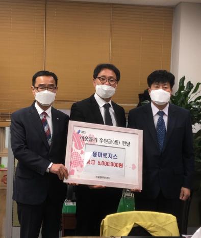 이날 기흥구 신갈동에선 용마로지스가 생계가 어려운 저소득 이웃에게 전해달라며 성금 500만원을 기탁했다.