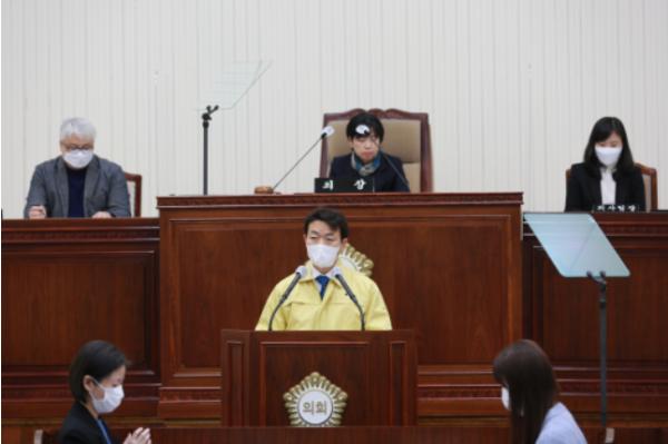 [KNT한국뉴스타임] 과천시 김종천 시장은 11일 과천시의회 본회의장에서 열린 제256회 과천시의회 제2차 정례회에서 시정연설을 통해 “2021년은 시민의 삶의 질 향상에 역점을 두고 이미 계획된 기반조성 사업과 진행중인 개발사업이 원활히 이행될 수 있도록 총력을 다하겠다”라며 내년도 시정 운영 방향에 대해 밝혔다.