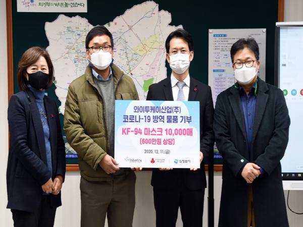 [KNT한국뉴스타임] 의정부시는 12월 11일 와이투케이산업㈜이 코로나19 확산 예방을 위한 KF-94 마스크 1만매를 기탁했다고 밝혔다.