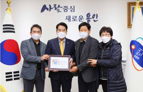 [KNT한국뉴스타임] 백군기 용인시장이 11일 오후 시장실에서 지난달 도로 확장 공사가 마무리된 처인구 백암면 가창3리 주민들로부터 감사패를 받았다.