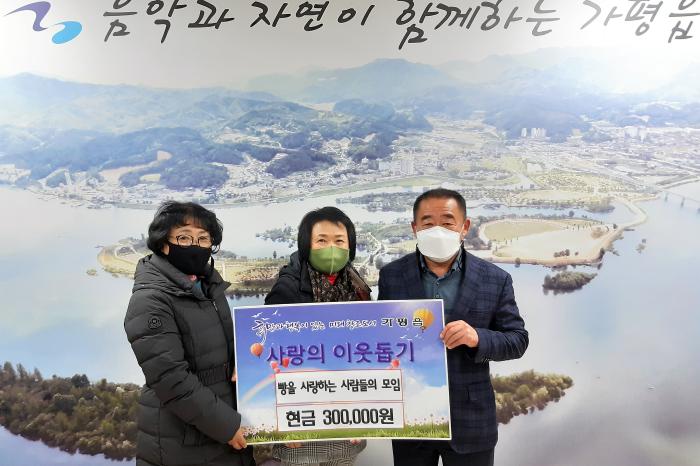 [한국뉴스타임=가평] 가평읍 빵을 사랑하는 사람들의 모임(이하 빵사모, 회장 허기순) 은 지난 10일 가평읍행정복지센터를 방문하여 연말연시 이웃돕기 성금 30만원을 기부했다.