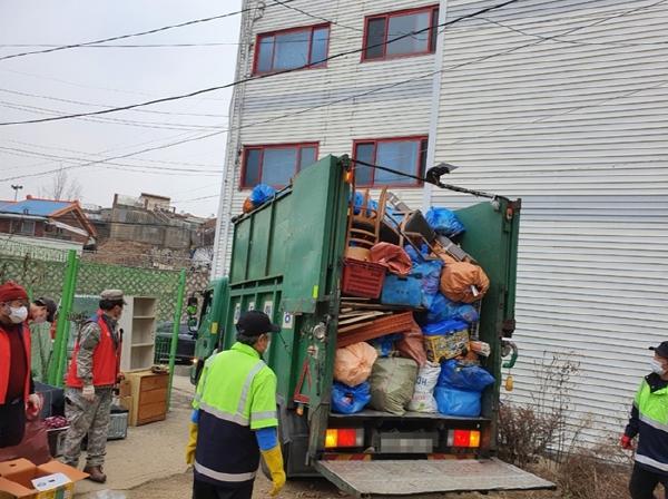 이번에 지원한 가구는 자녀 3명을 양육하고 있는 기초수급 모자가정으로, 저장강박증으로 집을 정리하지 못하고 쓰레기를 가득 쌓아 두고 지내며 자녀들에 대한 정서적 방임(아동학대)으로 신고 돼 아동보호전문기관이 자녀들을 아동보호시설로 분리 조치하고 가정의 주거정비를 지시했다. 그러나 이행하지 못해 자녀들이 가정으로 복귀하지 못하게 돼, (사)파주천사는 금촌1동으로 주거정비 지원을 요청했다.